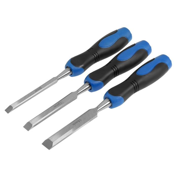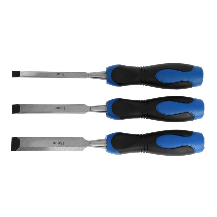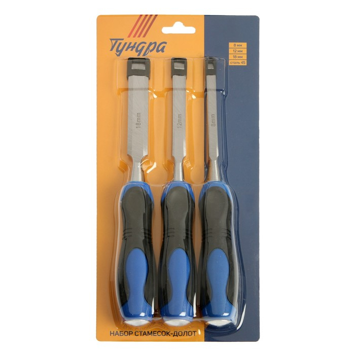 Набор стамесок-долот ТУНДРА, металлический затыльник, 2К рукоятка, 8-12-18 мм