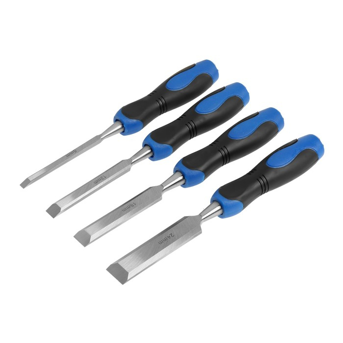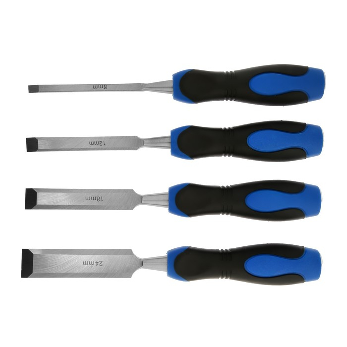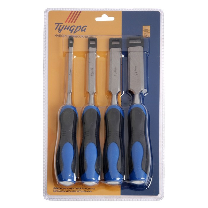 Набор стамесок-долот ТУНДРА, металлический затыльник, 2К рукоятка, 6-12-18-24 мм