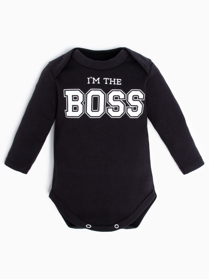 Боди детское с длинным рукавом Крошка Я "Little Boss", рост 86-92 см, цвет чёрный