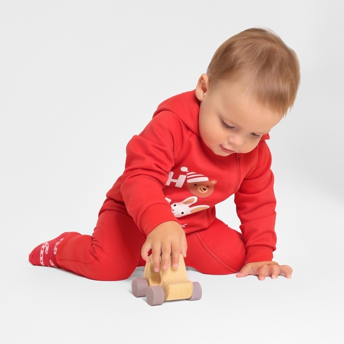 Комбинезон с капюшоном Крошка Я «Новогодние зверята», рост 74-80 см, цвет красный