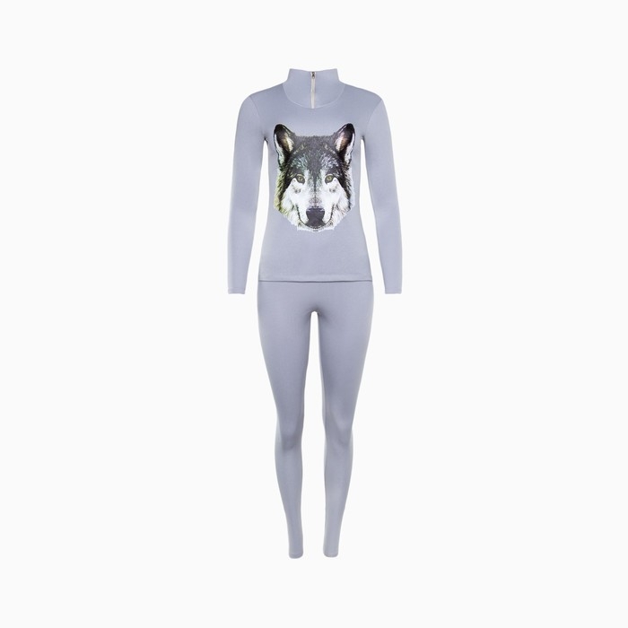 Термобельё женское (джемпер, леггинсы) принт волк, цвет светло-серый, размер 42