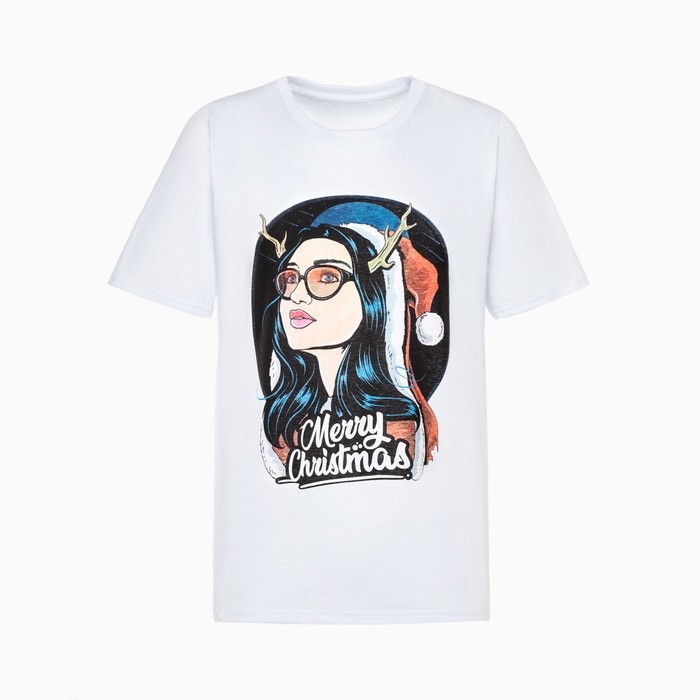 Футболка женская новогодняя Merry Christmas, цвет белый, размер 50