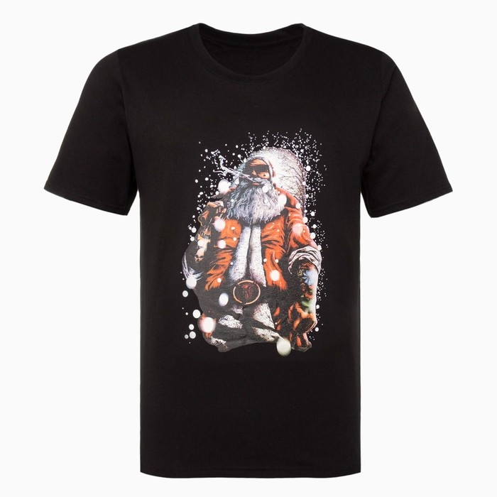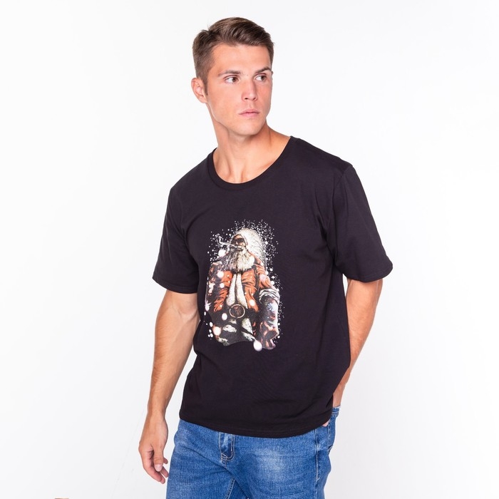 Футболка мужская новогодняя «Дед мороз», цвет чёрный, размер 48
