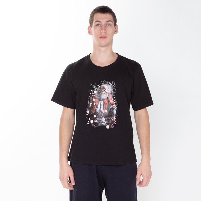 Футболка мужская новогодняя «Дед мороз», цвет чёрный, размер 52