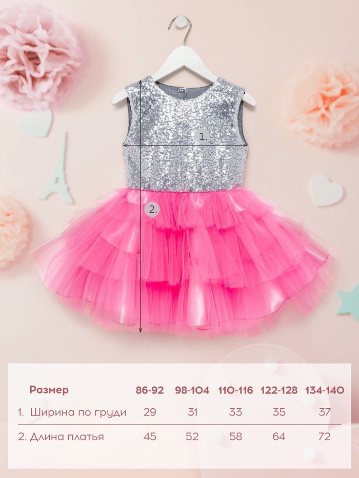 Платье детское с пайетками KAFTAN, размер 34 (122-128 см), ярко-розовый