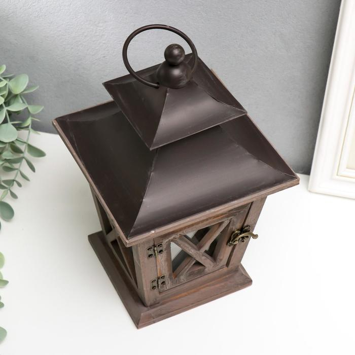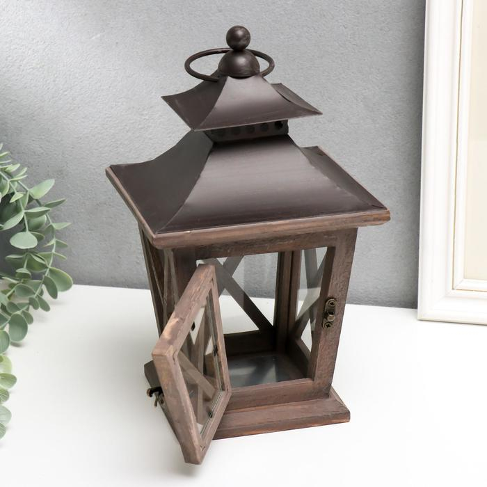 Подсвечник дерево на 1 свечу "Фонарь" тёмное дерево 26х15,4х15,4 см