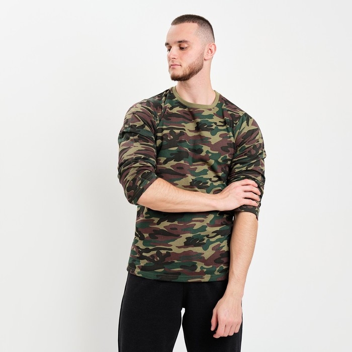 Лонгслив мужской, цвет зелёный камуфляж/пятна МИКС, размер 48