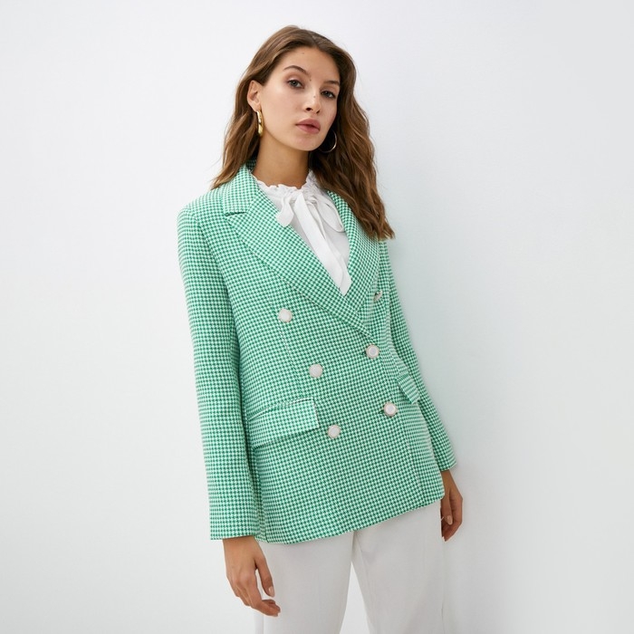 Пиджак женский двубортный MIST р. 48, зелёный/белый