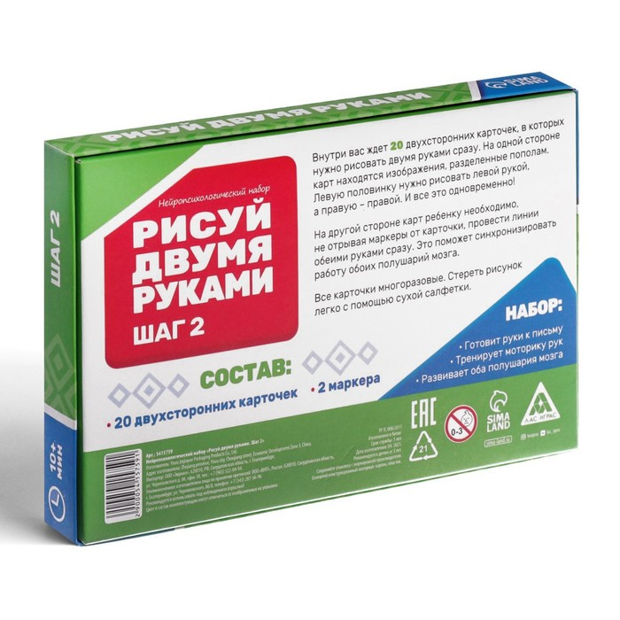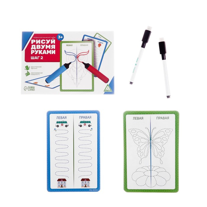 Нейропсихологический набор пиши-стирай «Рисуй двумя руками. Шаг 2», 20 карт, 3+