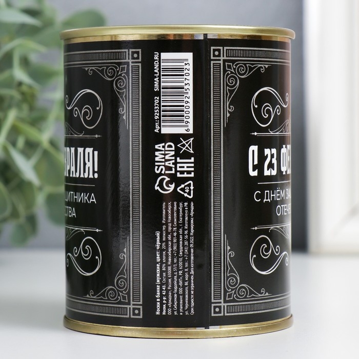 Подарочные носки в банке «Победитель во всём», (внутри носки мужские, цвет чёрный)