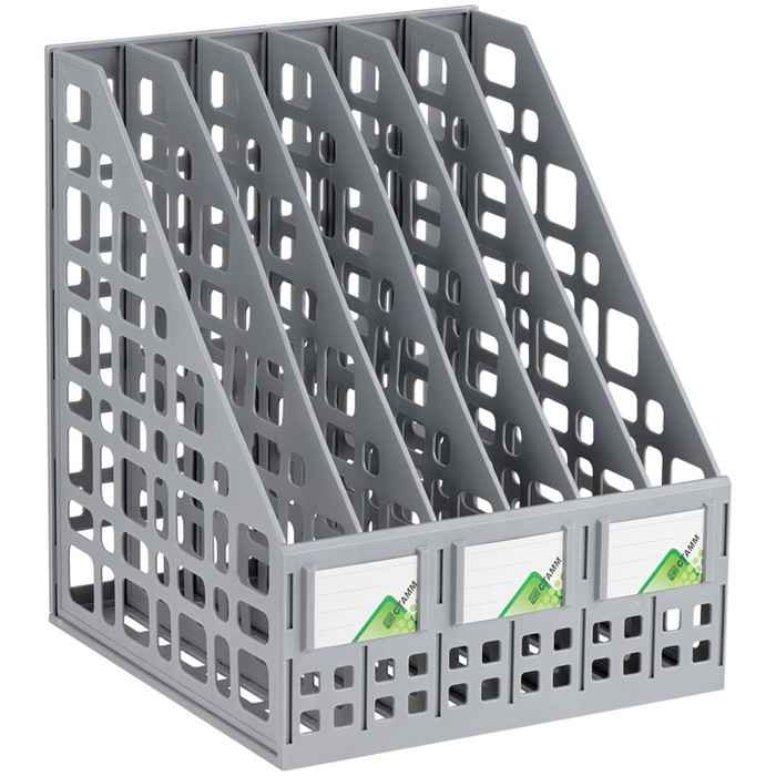 Лоток для бумаг cборный, вертикальный, 6 отделений, серый
