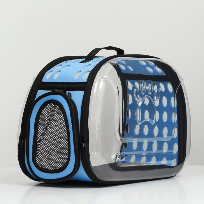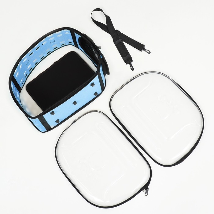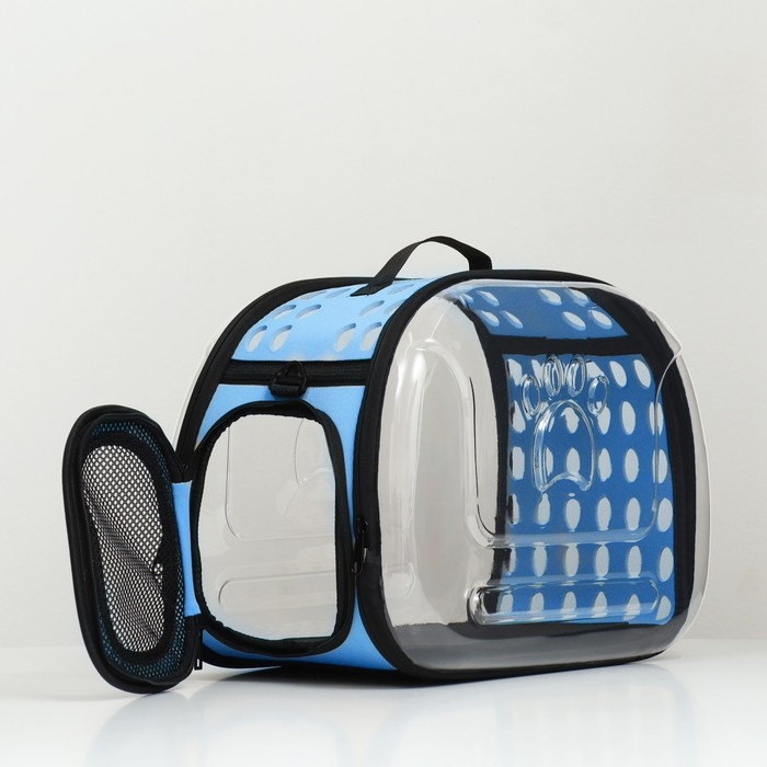 Переноска для животных прозрачная, 42*32*28 см, голубая