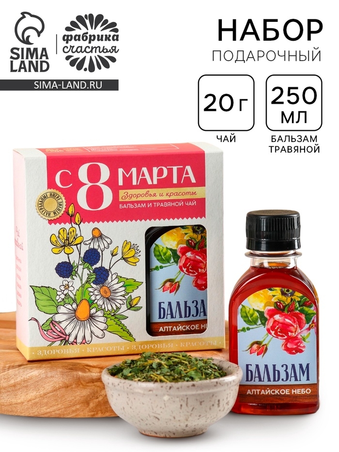 Подарочный набор «С 8 марта»: чай травяной 20 г., бальзам травяной 100 мл.