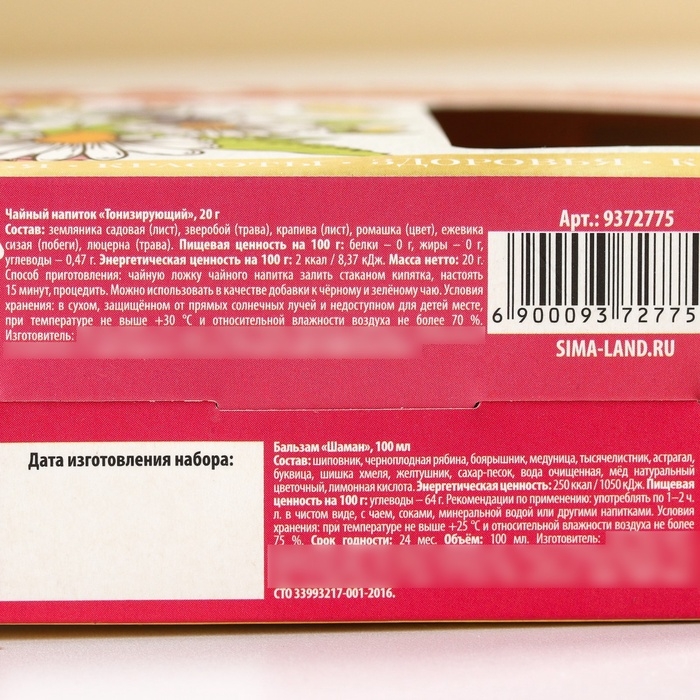 Состав: шиповник, черноплодная рябина, боярышник, медуница, тысячелистник, астрагал, буквица, шишка хмеля, желтушник, сахар-песок, вода очищенная, мёд натуральный цветочный, лимонная кислота.