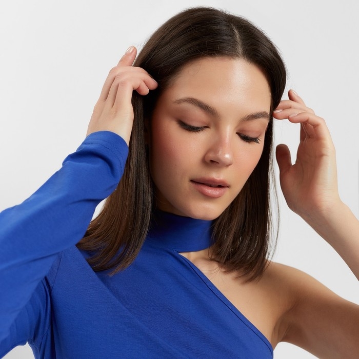 Лонгслив женский на одно плечо MINAKU: Basic line цвет синий, размер 40