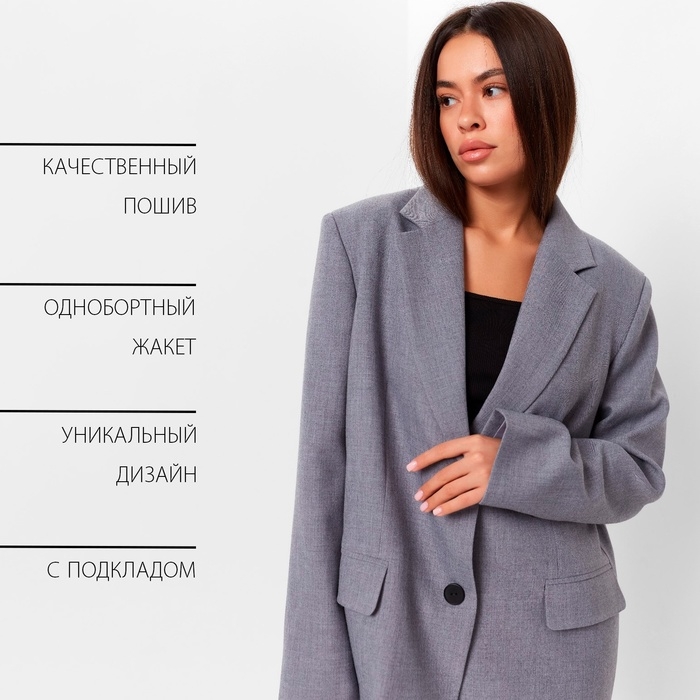 Пиджак женский с разрезом на спине MIST размер S-M, цвет серый