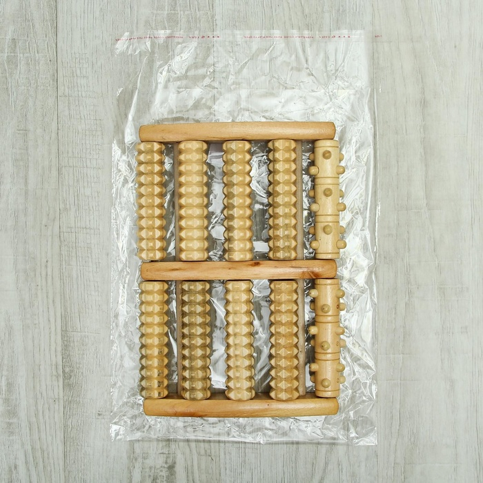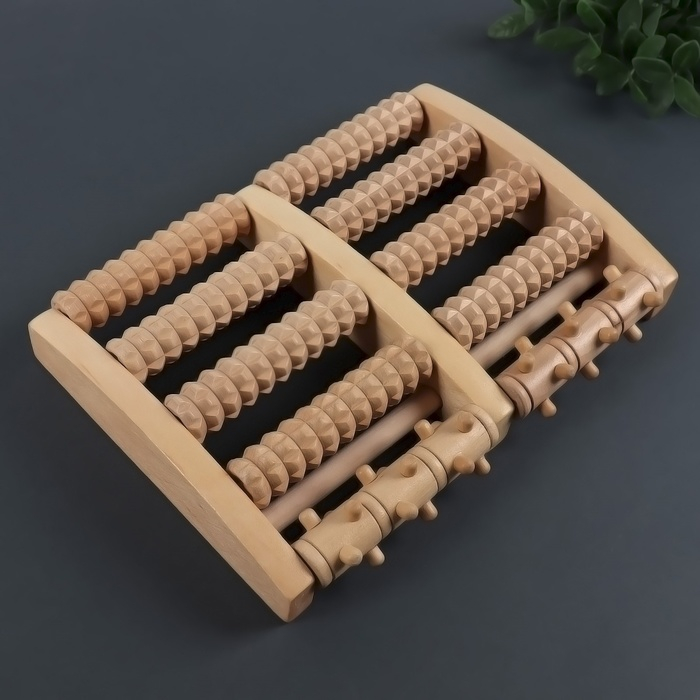 Массажёр «Барабаны», 5 рядов с шипами, 27 × 19 × 5 см, деревянный