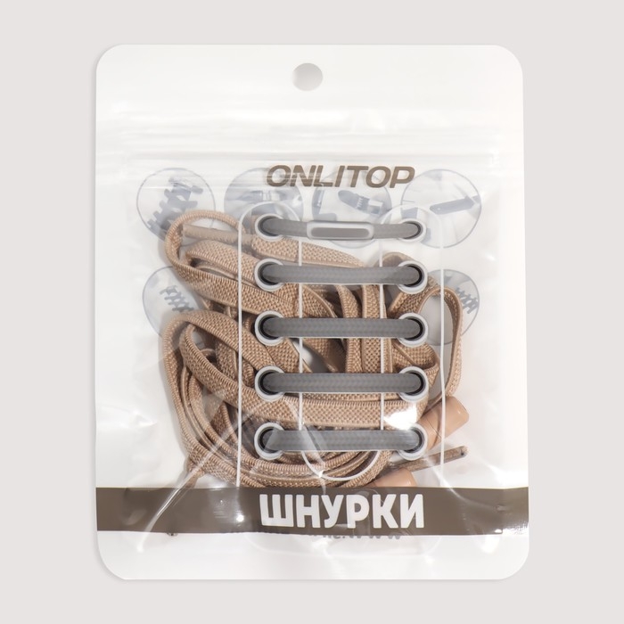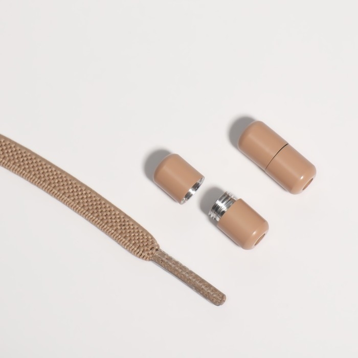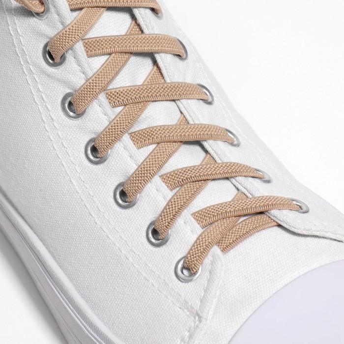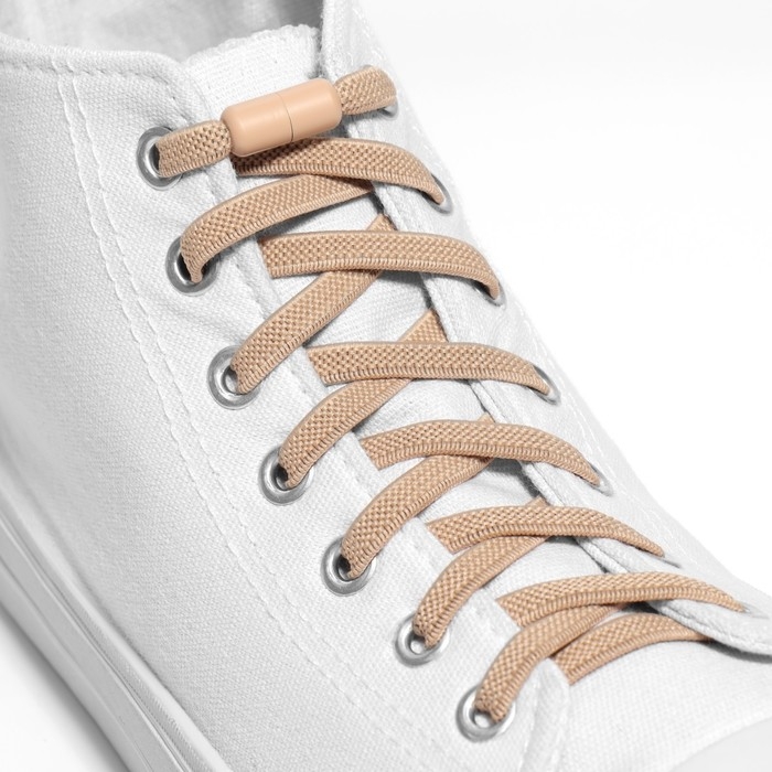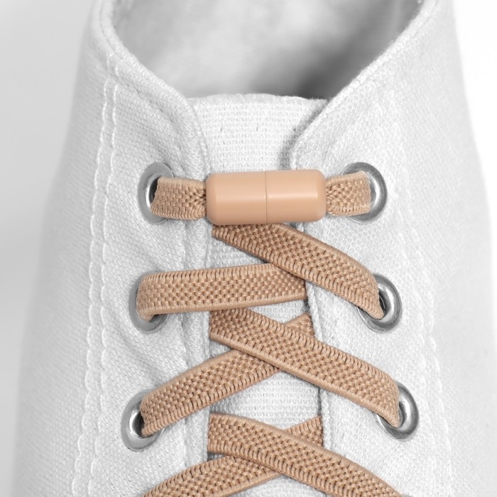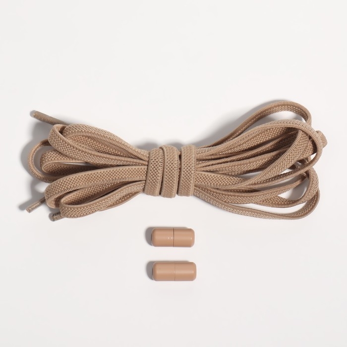 Шнурки для обуви, пара, плоские, с фиксатором, эластичные, 6 мм, 100 см, цвет бежевый
