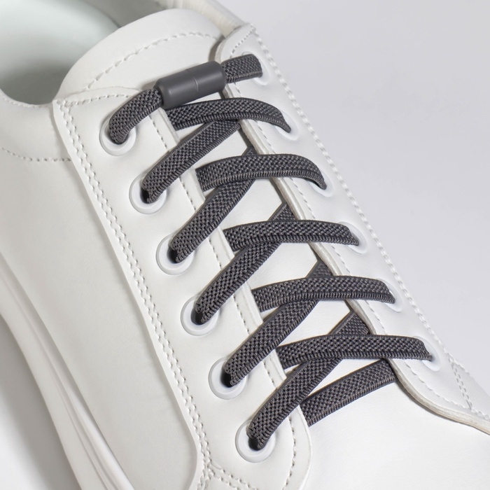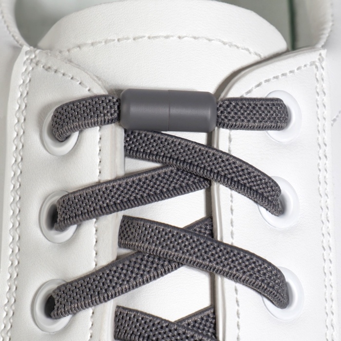 Шнурки для обуви, пара, плоские, с фиксатором, эластичные, 6 мм, 100 см, цвет серый