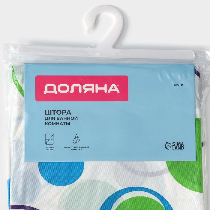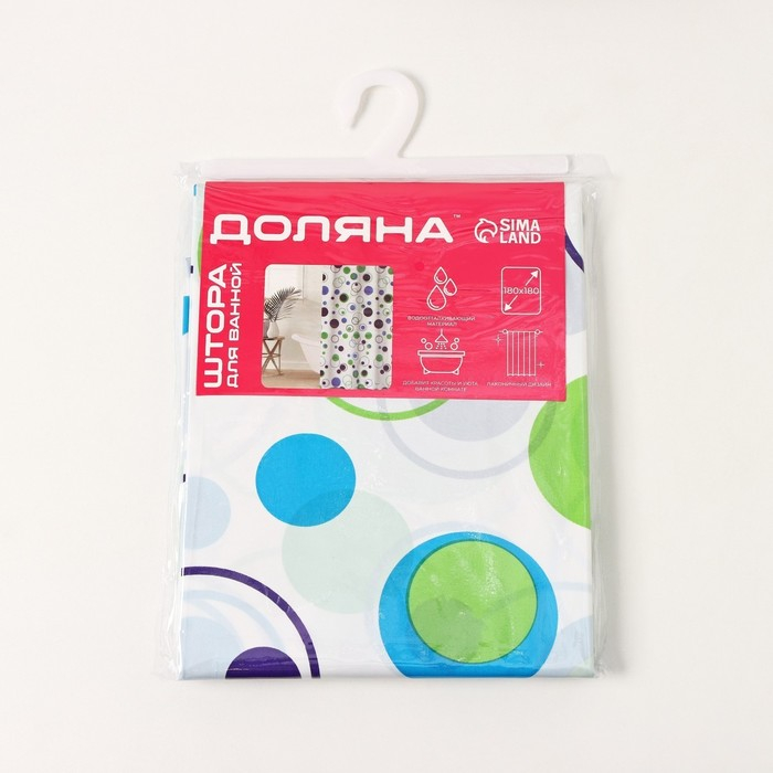 Штора для ванной Доляна «Круги», 180×180 см, PEVA
