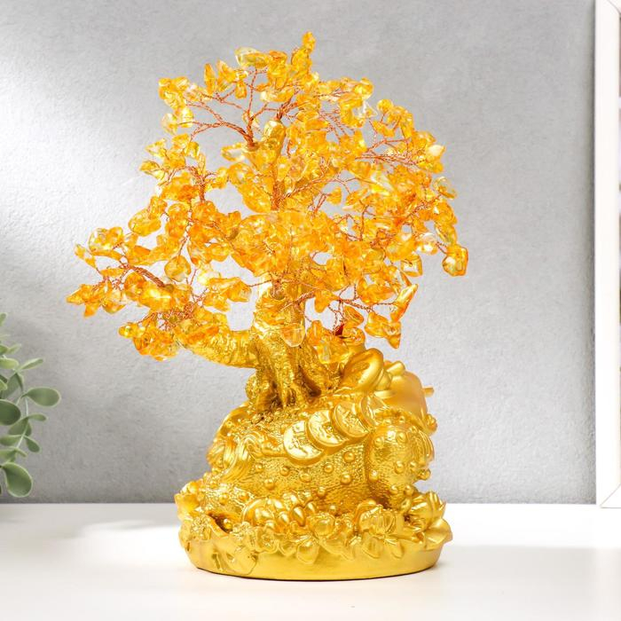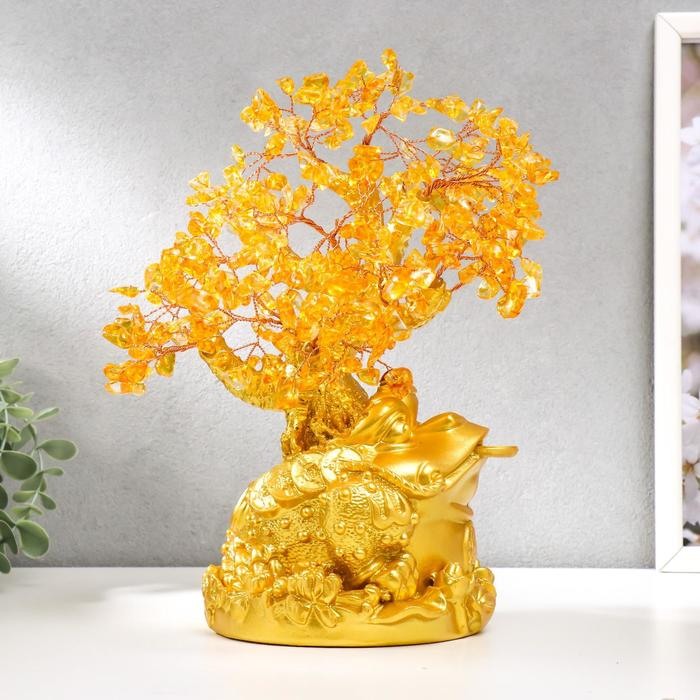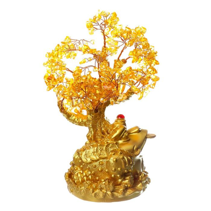 Сувенир бонсай 240 камней "Денежная жаба у янтарного дерева" 25х19х13 см