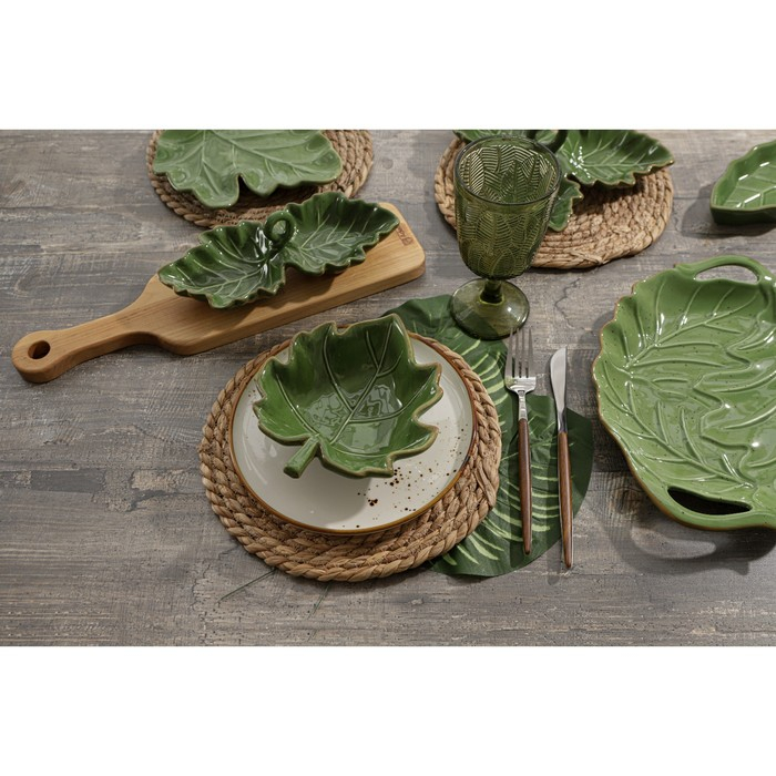 Менажница 2 ячейки Доляна «Лист», 21,8×6,9 см, цвет зелёный