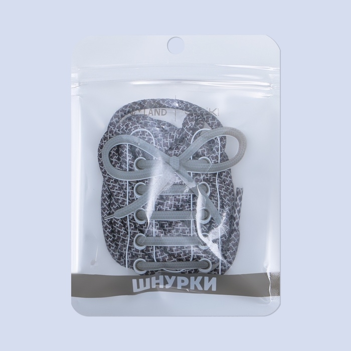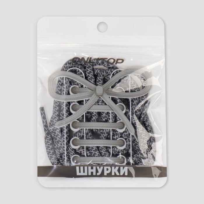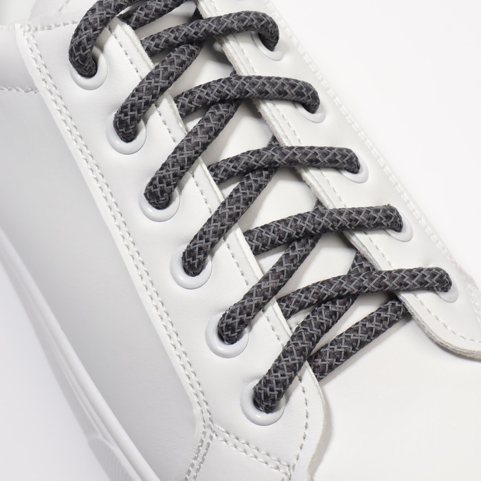 Шнурки для обуви, пара, круглые, со светоотражающим узором, d = 6 мм, 110 см, цвет серый/чёрный