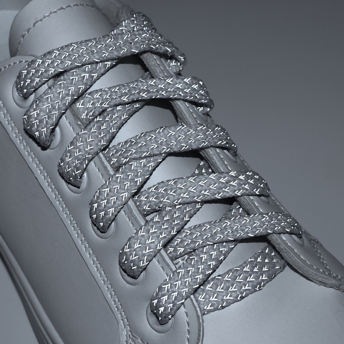 Шнурки для обуви, пара, плоские, со светоотражающим узором, 8 мм, 120 см, цвет серый