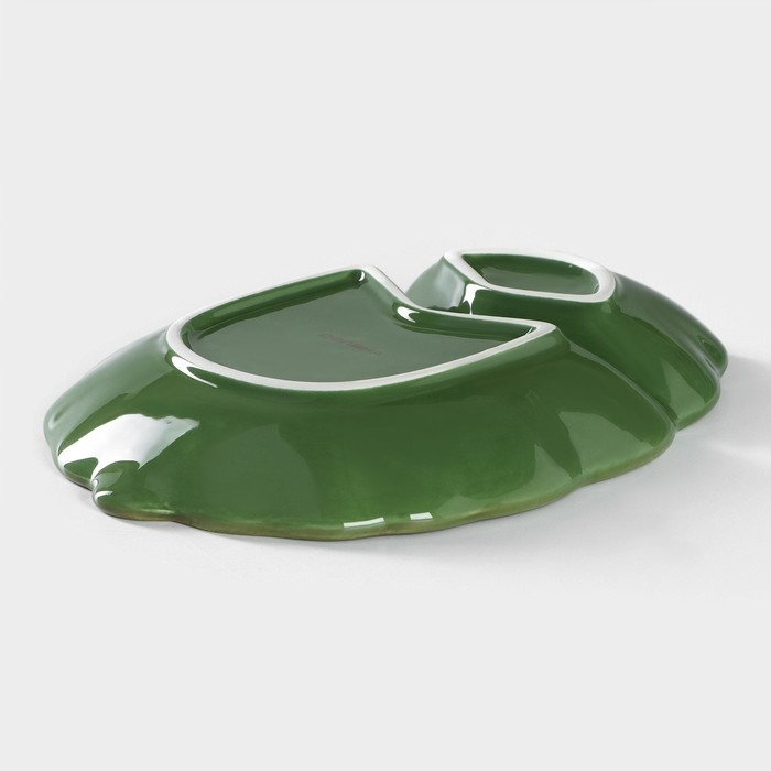 Менажница 2 ячейки Доляна «Лист», 24,7×18×3,8 см, цвет зелёный