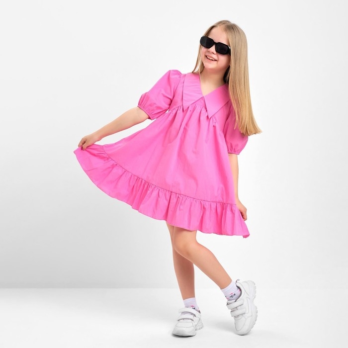 Платье детское с воротником KAFTAN, размер 32 (110-116 см), цвет ярко-розовый