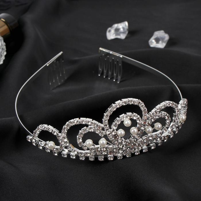 Диадема для волос "Аделина" капельки жемчуг, 5 см, серебро