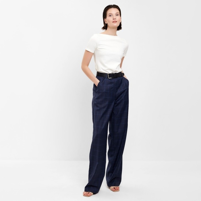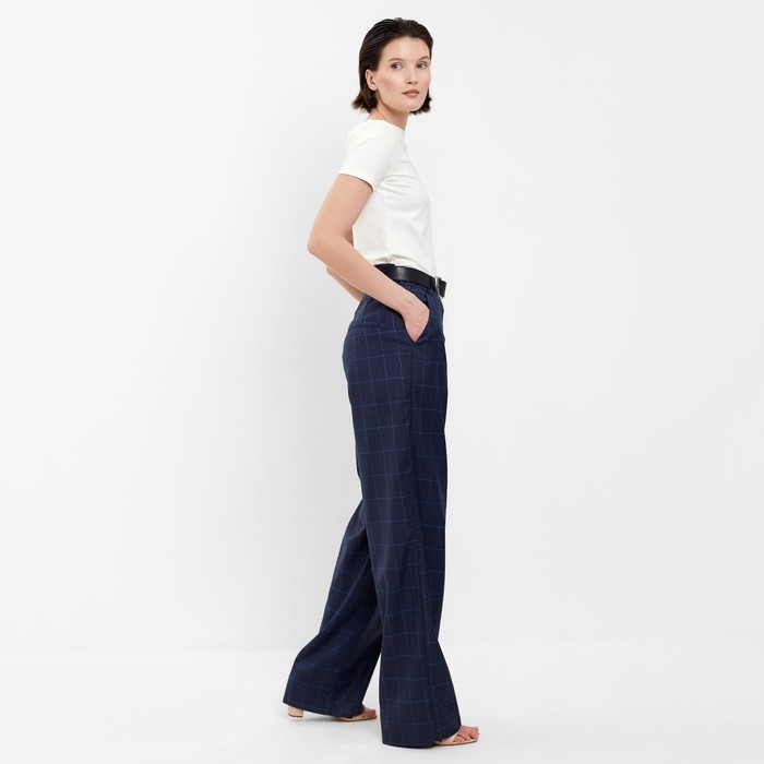 Брюки женские в клетку MINAKU: Classic цвет синий,р-р 48