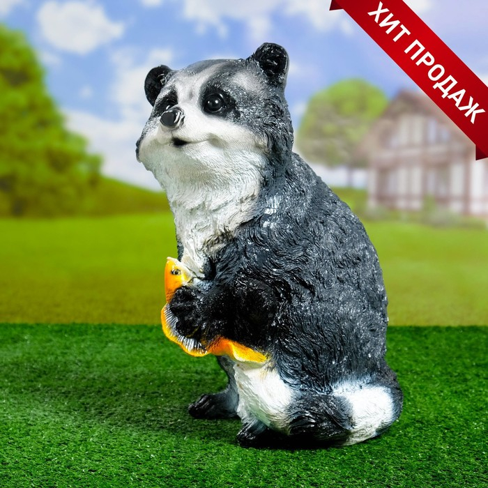 Садовая фигура "Енот с рыбкой" 20х23х36см