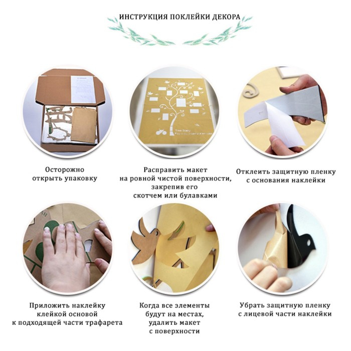 - Если нужно состыковать элементы наклейки, начинайте с самого крупного. Например, если наклейка в виде дерева — приклейте сначала ствол, а потом ветви.