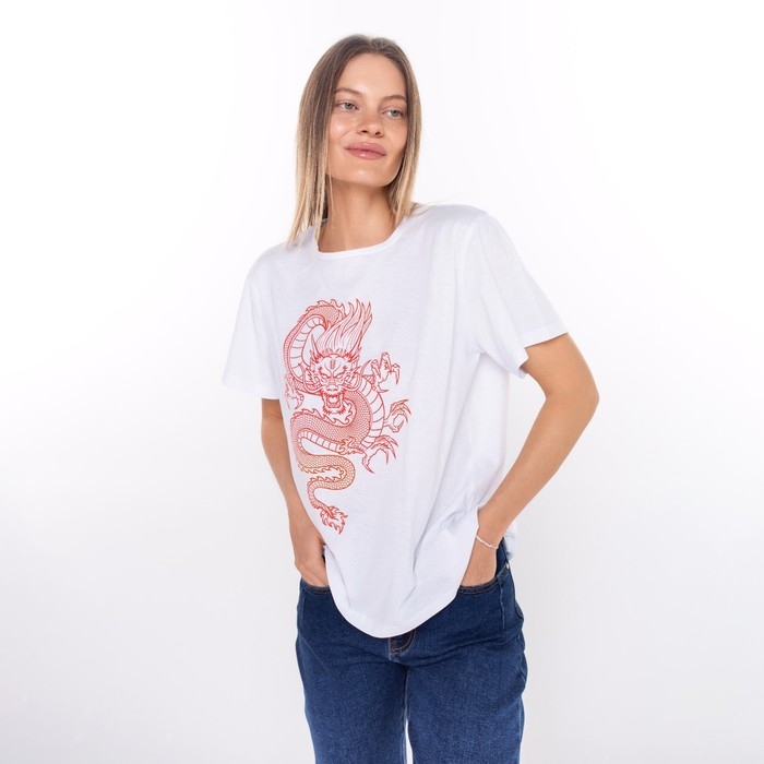 Футболка женская «Дракон», цвет белый/принт красный, размер 52