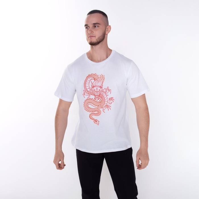 Футболка мужская «Дракон», цвет белый/принт красный, размер 56