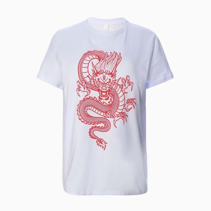 Футболка мужская «Дракон», цвет белый/принт красный, размер 54