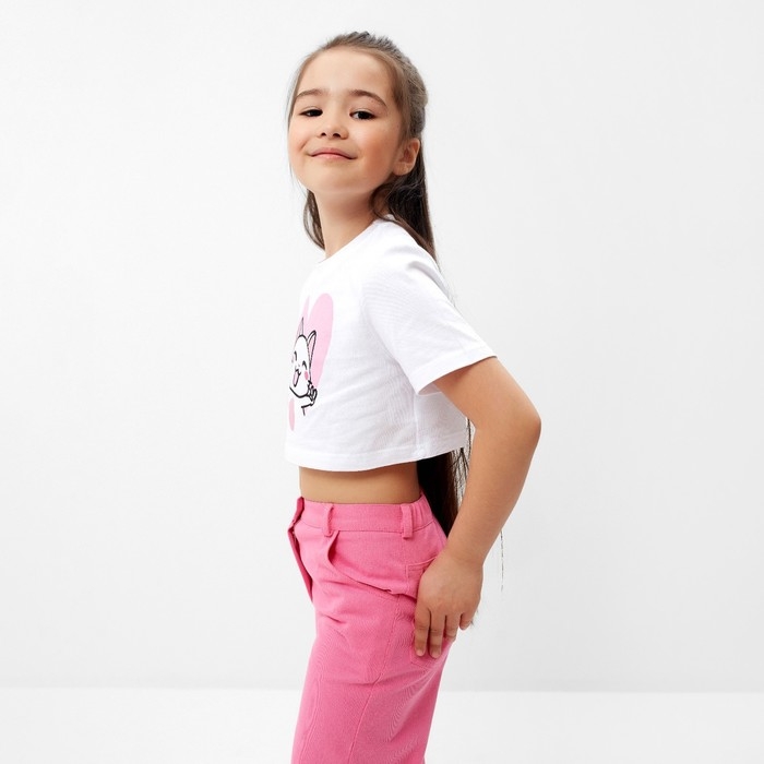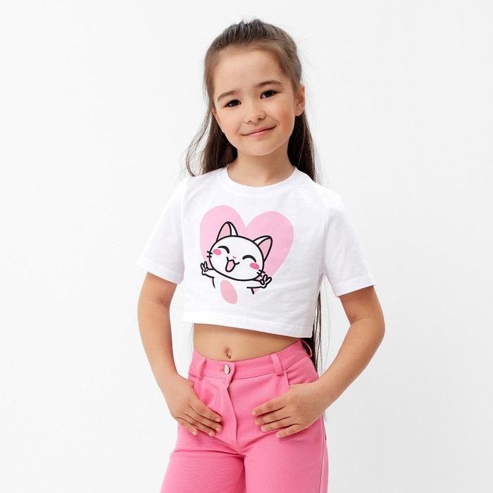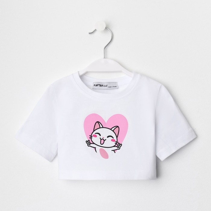 Футболка детская укороченная KAFTAN "Котик", р. 28 (86-92 см), белый