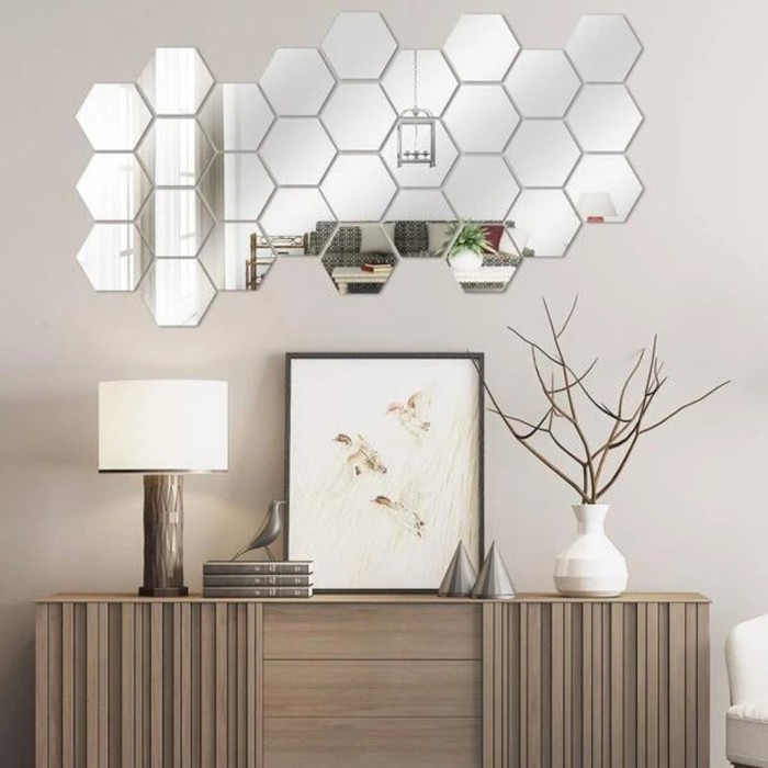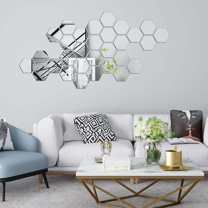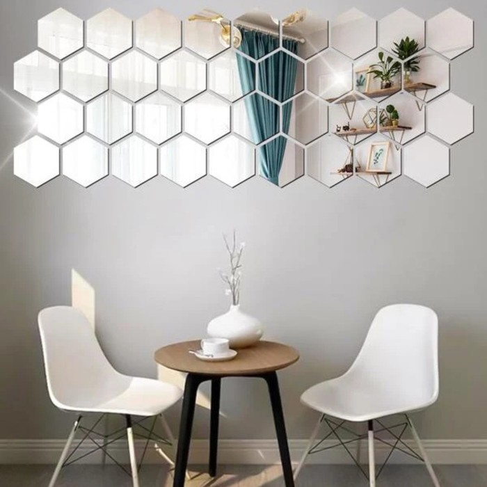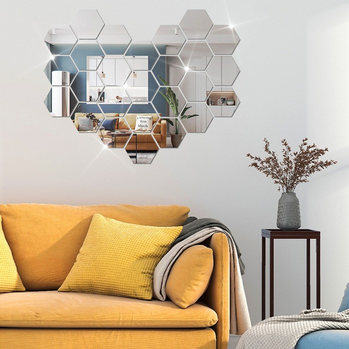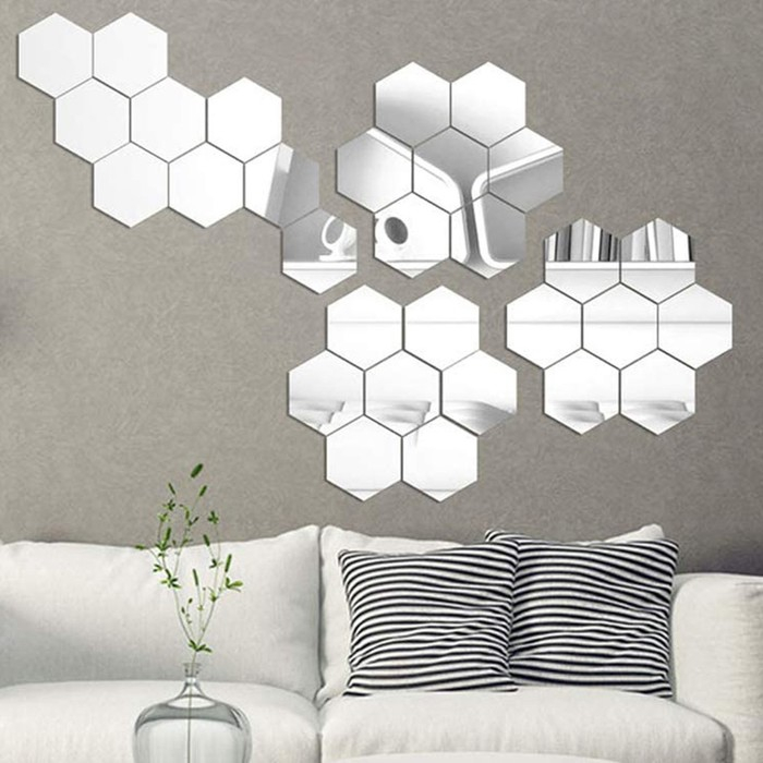 Наклейки интерьерные "Соты", зеркальные, декор настенный, набор 12 шт, 16 х 18 см