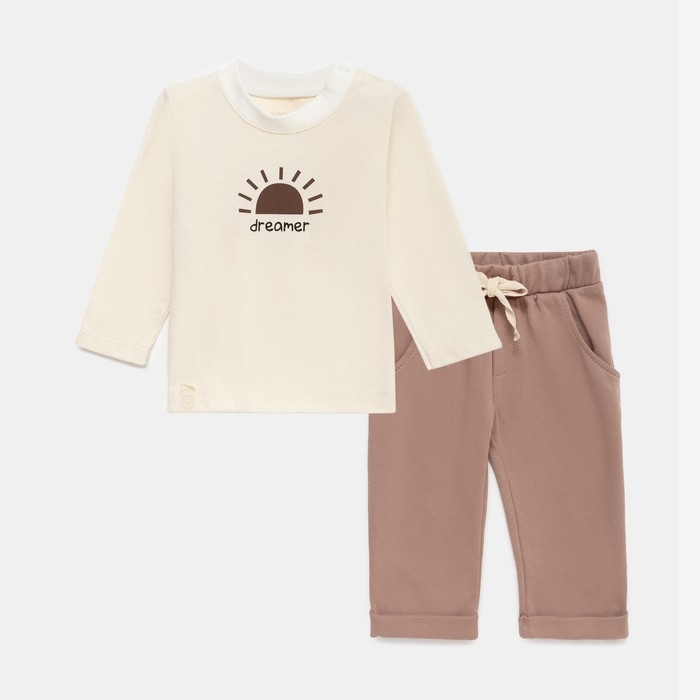 Комплект: футболка с дл. рукавом и брюки Крошка Я Dreamer, рост 92-98 см, бежевый