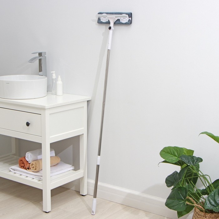 - Окономойка оснащена телескопическим черенком, вы сможете дотянуться даже до труднодоступных мест.