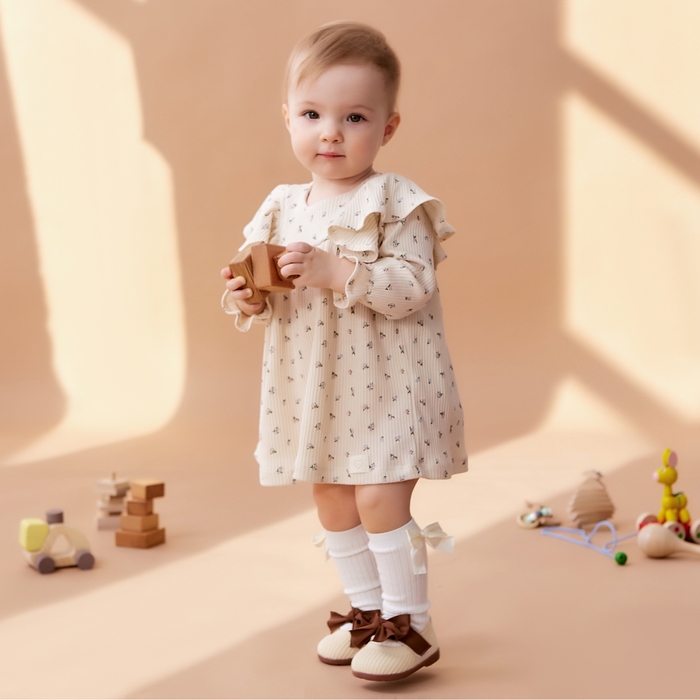 Платье с дл. рукавом Крошка Я Wildflowers, рост 68-74 см, бежевый