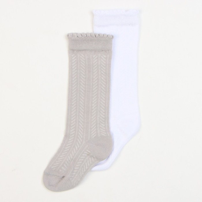 Гольфы ажурные 2 пары Крошка Я 12-14 см, белый/серый
