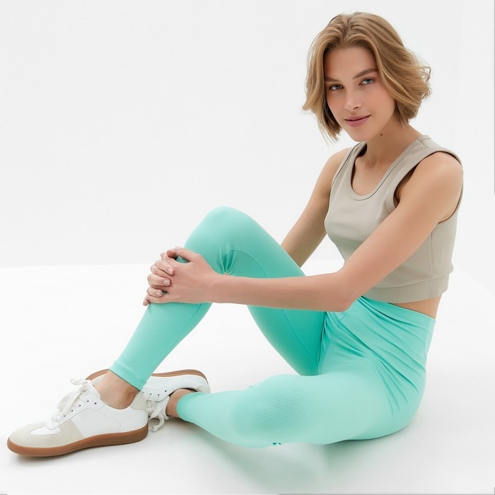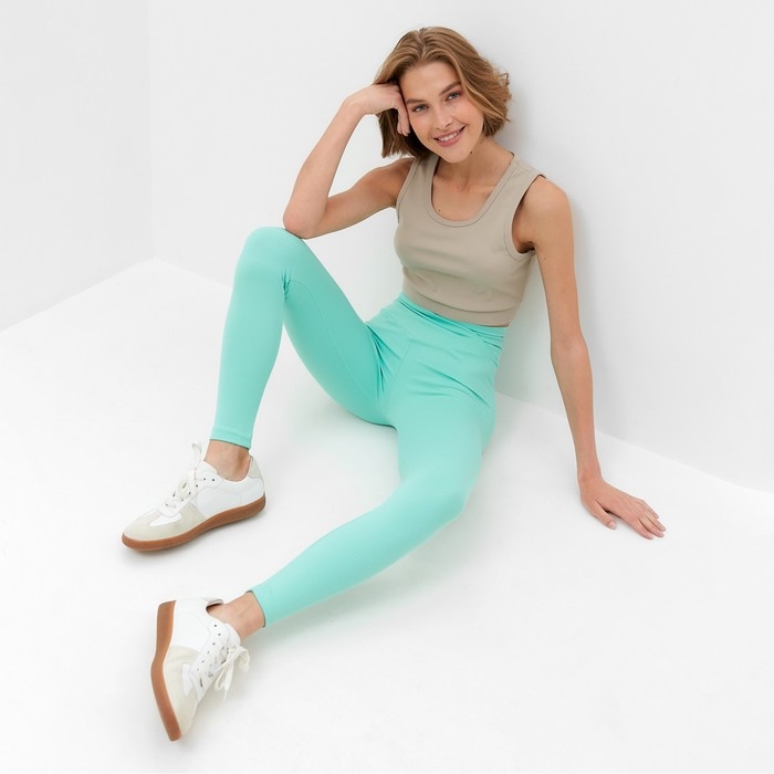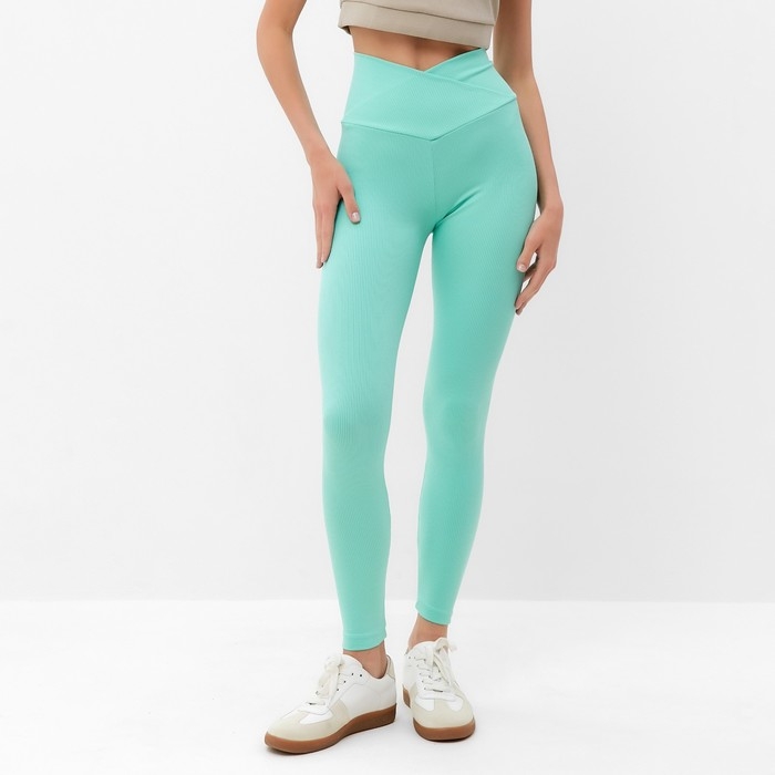 Брюки (леггинсы) спортивные женские с фактурной резинкой MINAKU цвет светло-зеленый, р-р 44