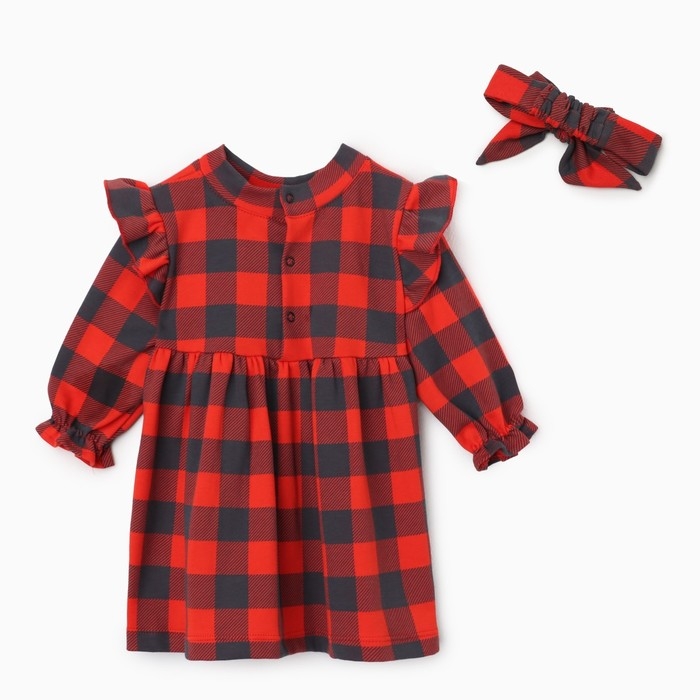 Платье и повязка Крошка Я "Клеточка", рост 62-68 см, красный