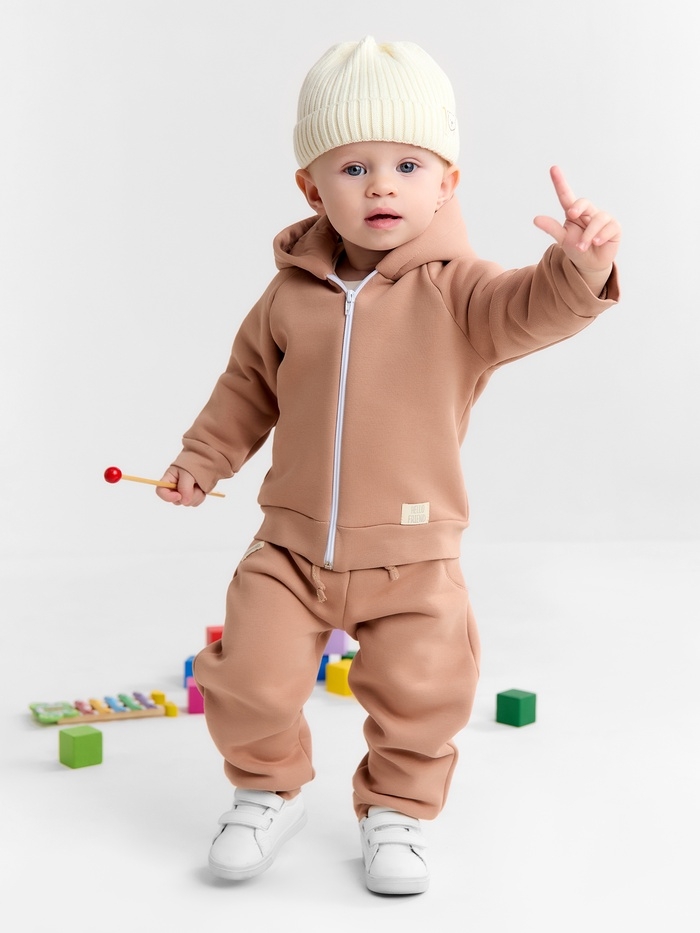 Костюм: толстовка и брюки Крошка Я Dino, рост 74-80, коричневый