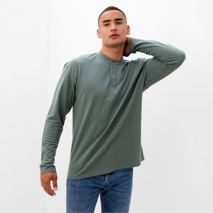 Футболка с дл. рукавом мужская MINAKU цвет хаки, р-р 56