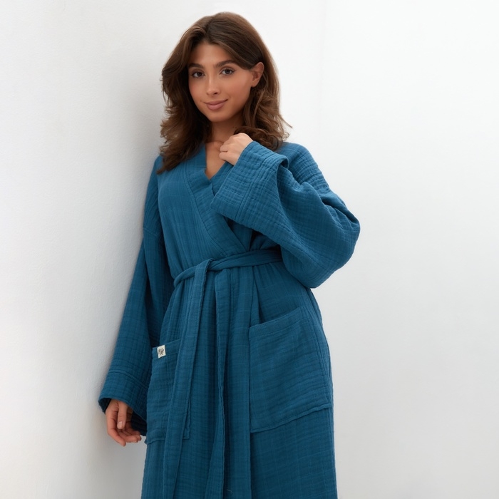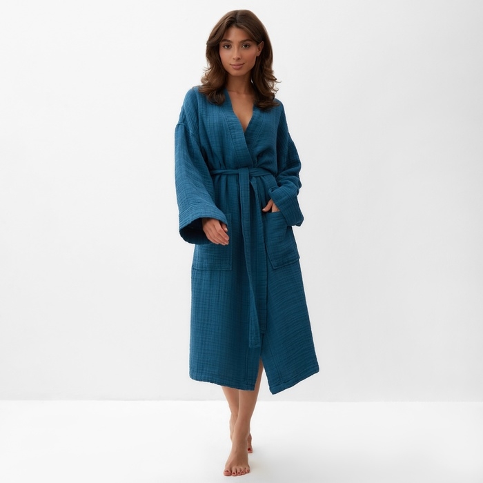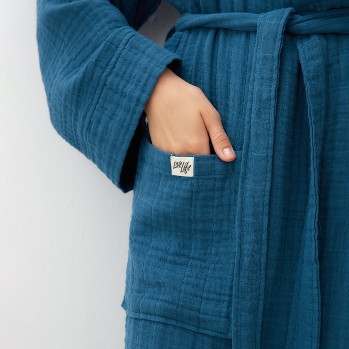 Халат жен.муслиновый LoveLife размер 42-44, цвет синий, 100% хл, 4-сл, 235гр/м2