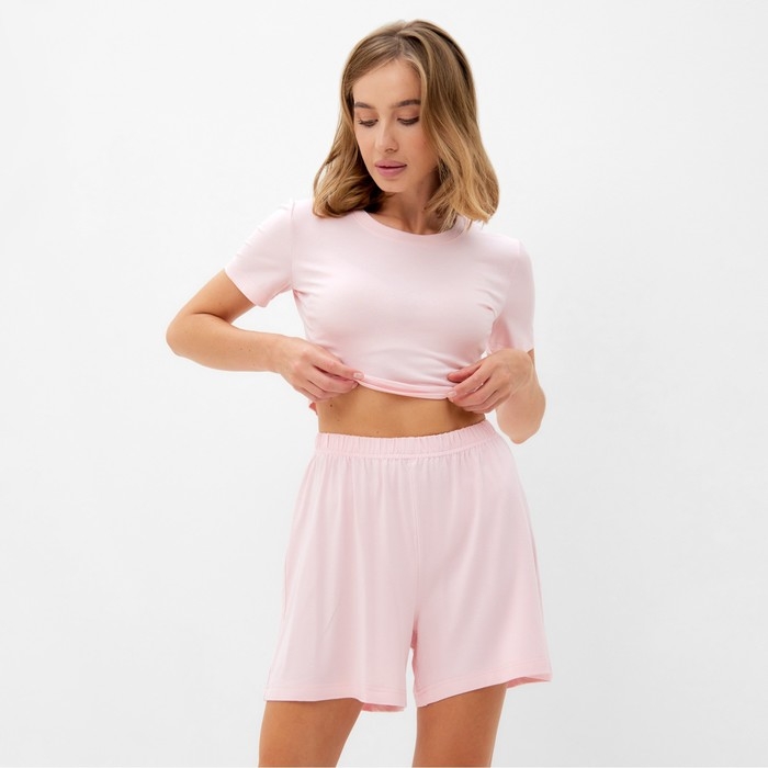 Комплект женский (футболка, шорты) MINAKU: Home collection цвет розовый, р-р 48