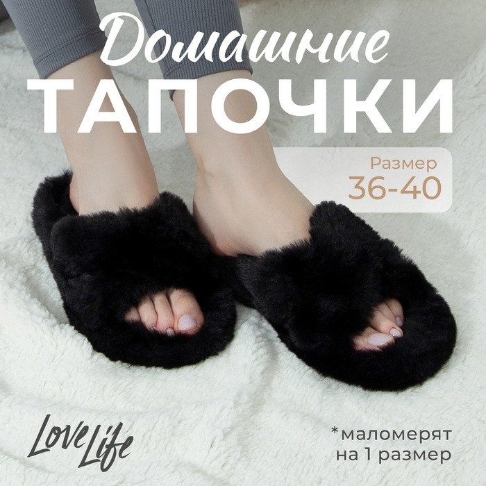 Тапочки женские с открытым носом размер 37, цвет чёрный